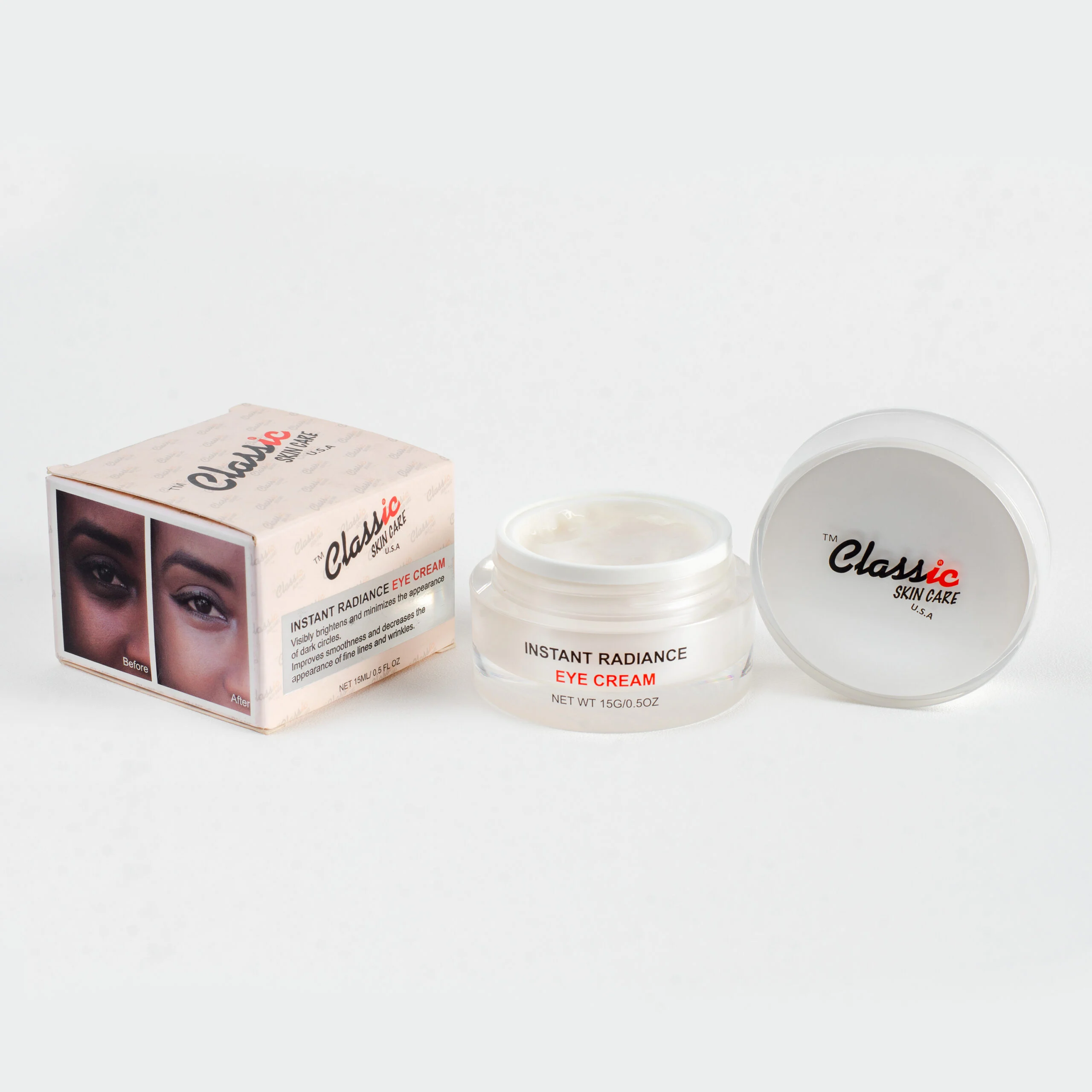 ClassicMakeupUSA Instant Radiance Eye Cream is a revitalizing formula designed to brighten and rejuvenate the delicate skin around the eyes. Infused with powerful ingredients, it reduces the appearance of dark circles, puffiness, and fine lines, leaving the eye area looking refreshed and youthful. Lightweight and fast-absorbing, this cream delivers instant hydration and a luminous glow for brighter, more radiant eyes.